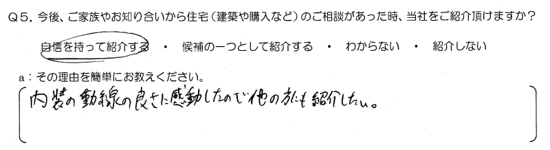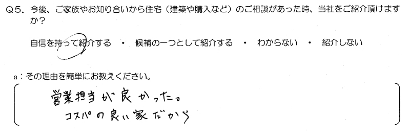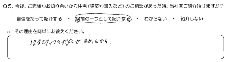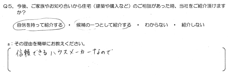 今後、ご家族やお知り合いから住宅のご相談があった時、当社をご紹介頂けますか?