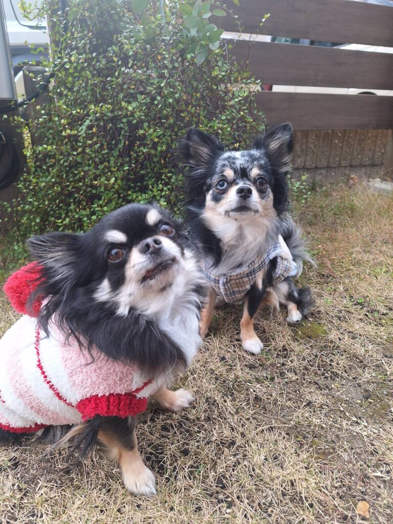 当社スタッフの愛犬、チワワの「うにちゃん」と「とろろちゃん」。