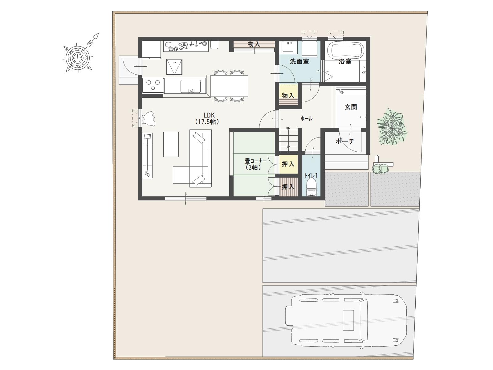 | 排水 | 公共下水(受益者負担金300円/㎡) |