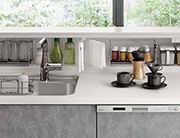 ニッチ部分のホーローボックスが、スムーズな作業をアシスト