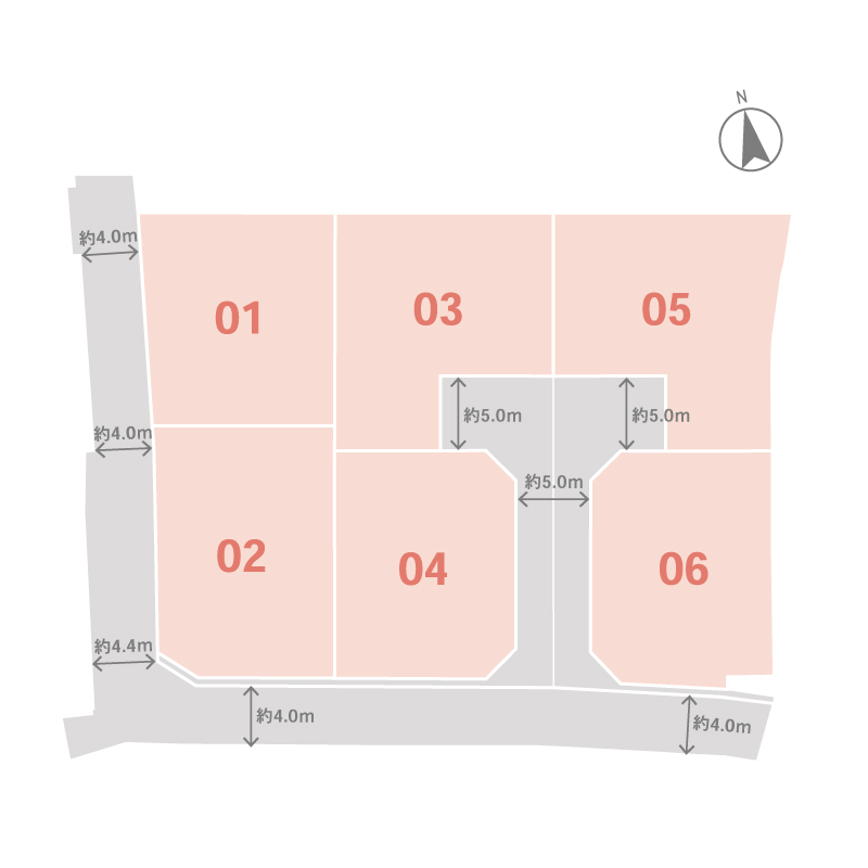 | 道路 | 分譲地内開発道路 約5.0m、南側公道 約4.0m |