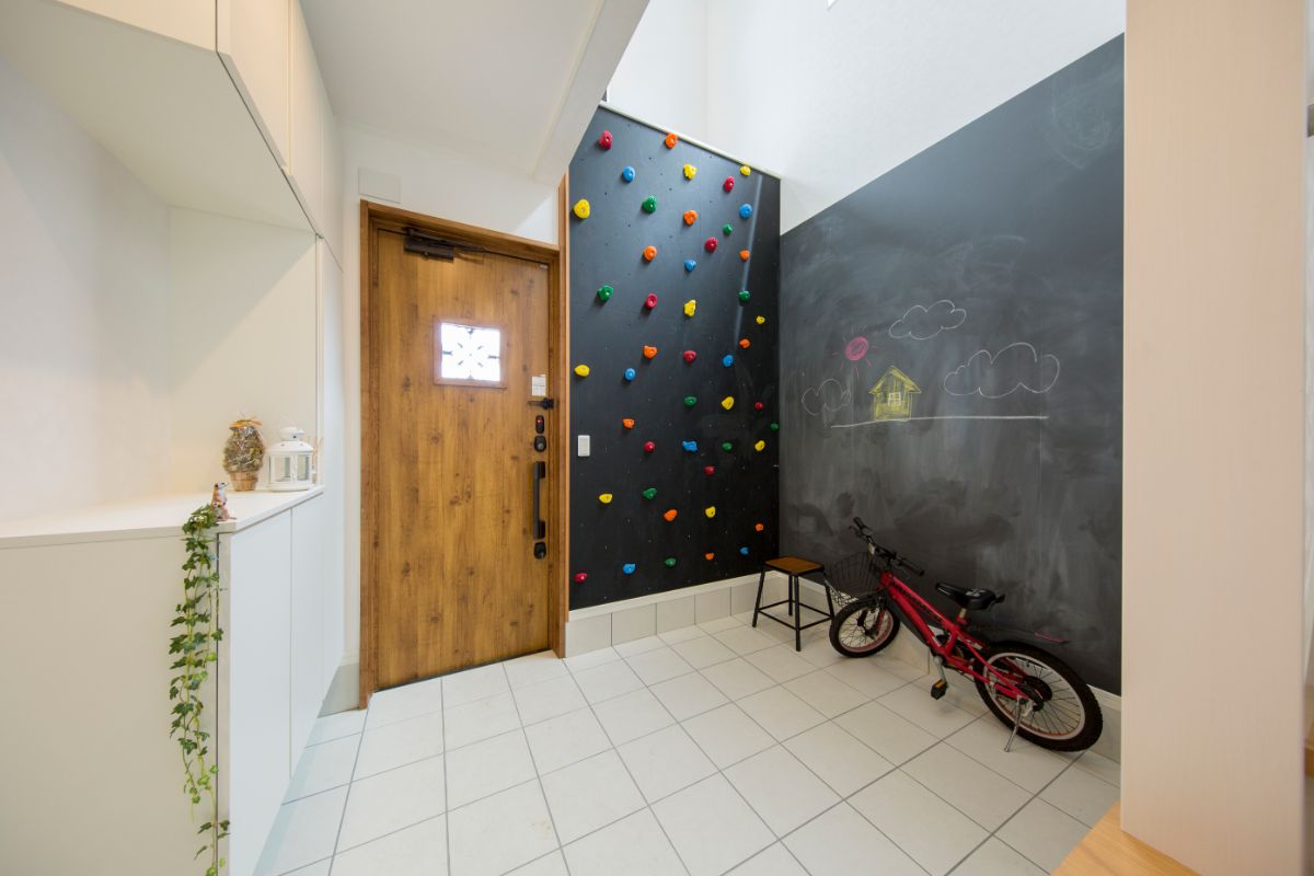 HOME > 施工事例 > こだわり > 吹き抜け・勾配天井 > ボルダリングや黒板壁があるお家